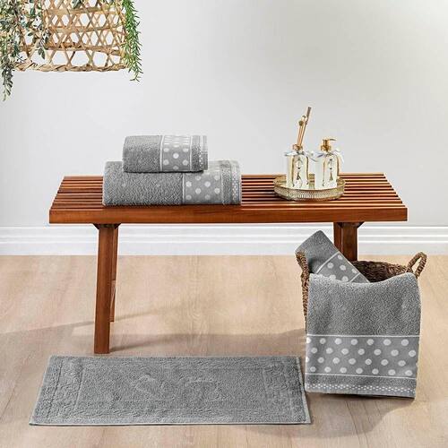 Jogo De Banho Toalhas Celine 5 Peças 100% Algodão 450g/m Suave - Granito Cinza