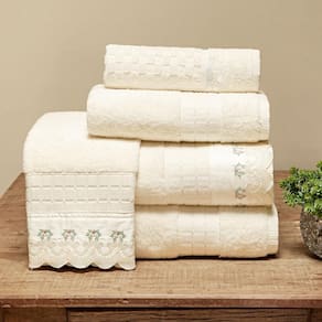Contém: 02 - Toalhas de Banho - 1,50m x 80cm 02 - Toalhas de Rosto - 80cm x 50cm 01 - Toalha de Piso - 70cm x 50cm