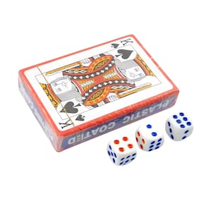 Este conjunto de entretenimento inclui um baralho de 54 cartas, feito de papel revestido de uma fina camada de plástico, garantindo maior durabilidade e resistência a rasgos e umidade. As cartas possuem uma textura suave, proporcionando uma experiência de manuseio agradável durante o jogo. Além do baralho, o conjunto vem com três dados, perfeitos para uma variedade de jogos e combinações. Ideal para horas de diversão com amigos e família, esse kit é versátil e durável.