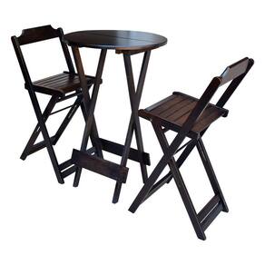 Jogo De Bistrô Dobrável Em Madeira Maciça C/ 02 Banquetas Altas - Tabaco - Cor: Marrom