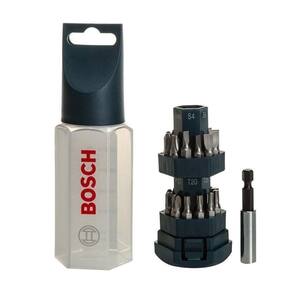 Características do set com 25 pontas big-bit: 24 pontas aparafusadoras c = 25mm Ph 1/1/2/2/3/3 Pz 1/1/2/2/3/3 Sl 4/4/6/6/7/7 T 20/20/25/25/30/30 01 suporte universal magnético