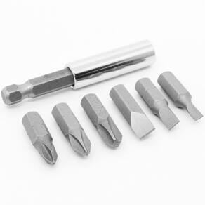Jogo de Bits 7 Peças com Adaptador Magnético Tradestar O Jogo de Bits 7 Peças com Adaptador Magnético Tradestar é a escolha ideal para todas as suas necessidades de parafusamento. Fabricado em aço carbono de alta qualidade, oferece durabilidade e resistência excepcionais. Projetado para uso em parafusadeiras, esse jogo de bits possui hastes hexagonais que proporcionam um encaixe firme e seguro. Composto por 3 bits fenda, 3 bits Phillips e 1 adaptador, você terá todas as ferramentas necessárias para lidar com diferentes tipos de parafusos. O adaptador magnético de 60mm permite uma fixação segura dos bits, evitando quedas indesejadas durante o uso. Com o encaixe de 1/4, esse jogo de bits é compatível com uma ampla gama de parafusadeiras disponíveis no mercado. Compacto e conveniente, o Jogo de Bits 7 Peças com Adaptador Magnético Tradestar é fácil de transportar e armazenar. Tenha sempre à mão as ferramentas necessárias para qualquer projeto de parafusamento. Invista no Jogo de Bits 7 Peças com Adaptador Magnético Tradestar e desfrute de qualidade, durabilidade e praticidade em cada aplicação. Adquira agora mesmo e esteja preparado para lidar com diversos tipos de parafusos. 90 dias após a compra. Imagens meramente ilustrativas As tonalidades da cor do produto podem sofrer alterações de acordo com a tela que estiver usando para visualização. Marca: Não Informado Ean: 7908572101244