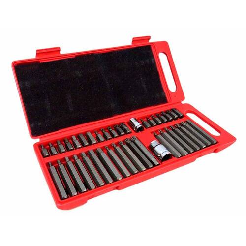 -7 bits allen hexagonal 4, 5, 6, 7, 8, 10 e 12mm. -5 multidentada: m5, m6, m8, m10 e m12. -7 torx: t20, t25, t30, t40, t45, t50 e t55. -7 allen bits curtos hexagonal 30mm: 4, 5, 6, 7, 8, 10 e 12mm. -5 multidentada: m5, m6, m8, m10 e m12. -7 torx: t20, t25, t30, t40, t45, t50 e t55. -2 adaptadores encaixe: 3/8' e 1/2'. -1 maleta. Aplicação: chave ideal para uso em carros, motocicletas, bicicletas, máquinas, etc. Código: 6840