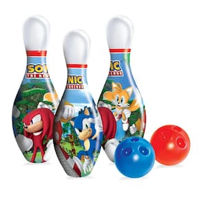 O Sonic está com tudo e traz uma linha completa de produtos para agitar a garotada. Faça vários strikes com o Jogo de Boliche Sonic feito de plástico resistente, com 6 pinos decorados e 2 bolas. Basta organizar os pinos e arremessar a bola, quem derrubar mais pinos, ganha! Além de auxiliar no desenvolvimento da coordenação motora, ele ainda de estimular a prática de atividades físicas.