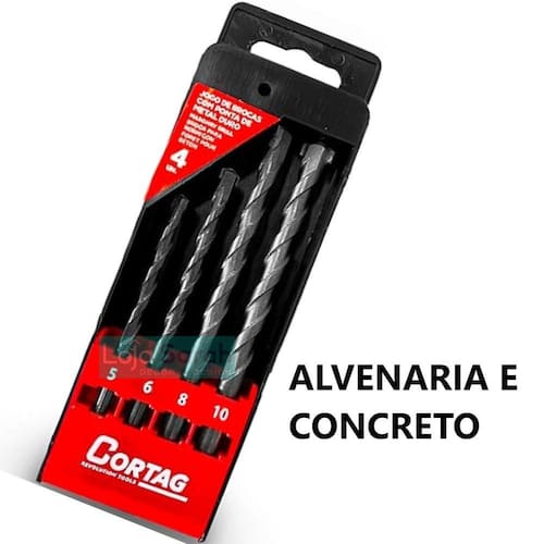 ?Esse é um conjunto de brocas de aço rápido com 4 peças em diferentes tamanhos. Indicado para perfuração de ?Alvenaria/ concreto (brocas com ponta de metal duro) garantindo maior praticidade e segurança nas reformas de sua residência.