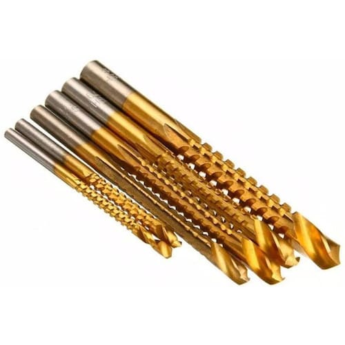Jogo de Broca de Corte Lateral HSS 6 Peças Titânio Charbs Kit com 6 Brocas de Corte Lateral em Aço com revestimento em Titânio Charbs. Para corte em madeira, alumínio, placas de plástico e etc. - Marca: Charbs - Medidas: 3, 4, 5, 6, 6.5 e 8mm - Material: HSS Aço de alta velocidade 4241 - Material da superfície: titânio revestido - Uso em furadeiras de 3/8 ou 1/2 - Maior durabilidade - Para corte em madeira, alumínio, placas de plástico e etc - Broca de corte com bordas afiadas, propiciando um corte mais rápido e com menos esforço - Nunca Ultrapasse a velocidade de 20.000 rpm - Embalagem: Blister - Peso bruto: 95 gramas - : 90 dias