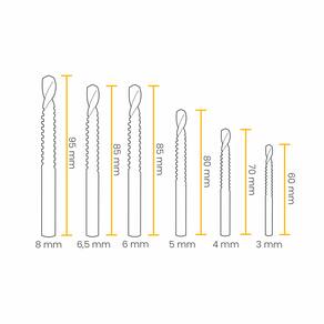 Marca: Charbs Modelo: Brocas de Corte Lateral Material: HSS 4241 (aço de alta velocidade) Revestimento: Titânio Medidas: 3 | 4 | 5 | 6 | 6,5 | 8 mm Uso: Furadeiras 3/8" ou 1/2" Durabilidade: Alta resistência e maior vida útil Indicado para: Madeira, alumínio, placas de plástico e outros materiais Diferencial: Bordas afiadas para cortes mais rápidos e com menos esforço Atenção: Não ultrapassar 20.000 rpm Embalagem: Blister