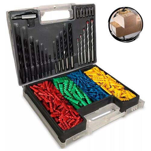 O Jogo de brocas bits e buchas com 300 peças é idel para uso doméstico e hobby, conta com as brocas e bits e buchas com as medidas mais comuns.