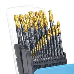 • Armazenamento e Transporte Práticos: A caixa de plástico resistente não só protege as brocas, mantendo-as organizadas, mas também facilita o transporte, tornando este conjunto ideal para uso em diferentes locais.Especificações: Haste: cilíndrica Material: nitreto de titânio polidoNúmero de brocas: 25 Medidas das brocas: 1 - 13 mmMaterial: Polida/Nitreto de TitânioQuantidade de peças: 25.