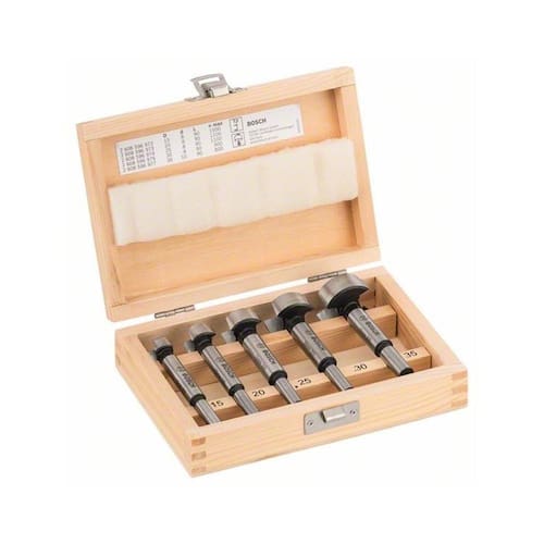 O Jogo de brocas para madeira 15 a 35 mm com 5 peças - forstner da Bosch possui excelente vida útil em perfurações de ajuste preciso. O desenho do dente cria menos fricção e calor trazendo maior durabilidade da Broca e sua ponta centralizadora garante o posicionamento exato para perfuração o proporcionando alta precisão no furo. As Brocas Forstner possuem duas lâminas, uma face cortante periférica e ponta centralizadora, proporcionando perfuração suave e cortes sem lascar o material, sendo ideal para fixar dobradiças, buchas e remover nós. Possui encaixe cilíndrico, é fabricada sob alto padrão de qualidade conforme a norma DIN 7483 e a dureza da ferramenta de corte é de 50 HRC como mínimo.