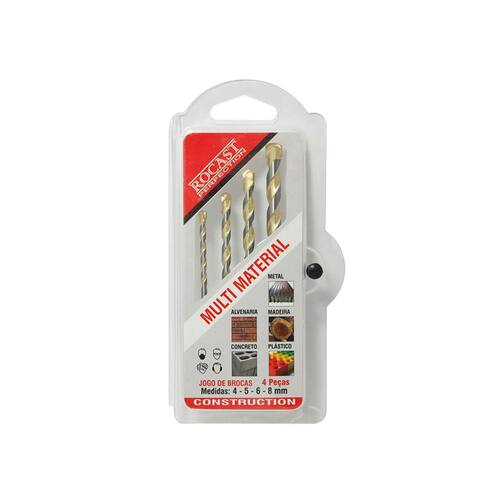 Jogo de Brocas Multimateriais Pastilha de Metal Duro com 4 peças 4,0 a 8,0 MM Aplicação: metal, alvenaria, concreto, madeira e plástico Apresentação: blister com 4 unidades