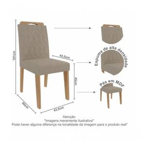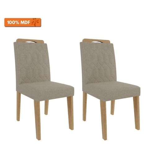 Jogo De Cadeira Para Sala De Jantar 102x43,5cm Em Mdf Paola Cimol Nature/linho Bege Nature/linho Bege