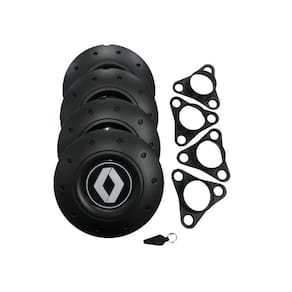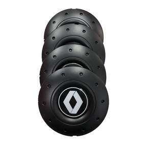 Jogo de Calotas de Centro Miollo para Renault Kwid Aro 14 2015/2021 com roda em Detalhe Bolinha Estilo Amarok Preto - MC3-0711/C18 – Renault Kwid – Aro 14 – 2015/2021 – Jante: 41/2J X 14 X ET 37 – Furação: 3x100