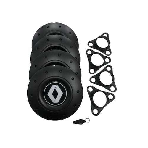 Jogo de Calotas de Centro com suporte inovador de travamento exclusivo que não solta para valorizar a roda original.