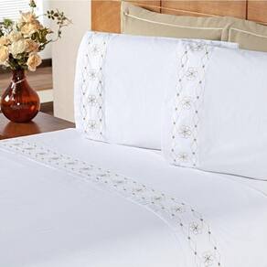 O Jogo de Cama Damasco, possui lindos detalhes bordados, é confeccionado com tecido 100% algodão 200 fios, a escolha perfeita para sua cama!