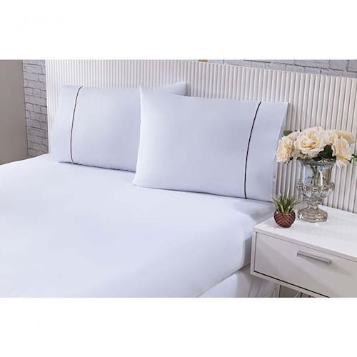 O Jogo de Cama Gran Moratta é confeccionado com tecido Percal 100% Algodão, é Branco e possui um toque de cor em seu detalhe em Vivo.