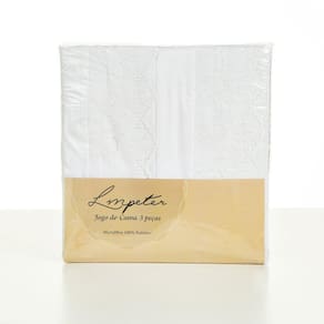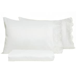 Jogo de Cama 3 Peças Acetinado Bordado Inglês LM Peter Branco Casal