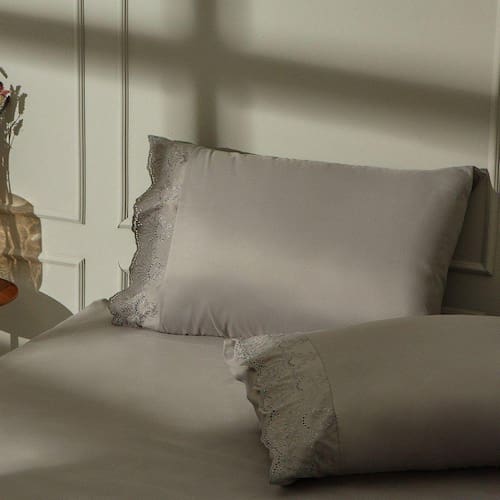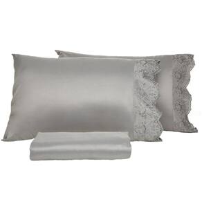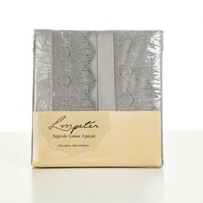 Jogo de Cama 3 Peças Acetinado Bordado Inglês LM Peter Cinza Queen