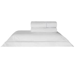 Jogo de Cama 4 Peças 300 Fios Algodão Branco/Prata Festonê Lázio Kacyumara - Tamanhos
