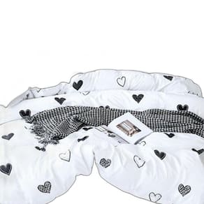 Jogo de cama Casal Love Black Love - 6 peças com enchimentos Produto de alta qualidade grife Casa da Fama designer - Dos cenários de novelas para sua casa. Disponível para camas: Casal king 1 lençol com elástico para colchões casal king de até 35 cm - lençol preto 1 edredom dupla face de 2,70cm x 2,70cm - frente branco estampa love black love - costas preto 2 capas de travesseiros de 70cm x 50cm - Estampa Love Black Love 2 capas de travesseiros de 70cm x 50cm - Preto A sua cama merece este mimo Composto por: Lençol, edredom e capas de travesseiros em microfibra toque macio e confortável. Os travesseiros não acompanham refil de enchimento. Nossas peças são reconhecidas mundialmente pela qualidade e veracidade a qual vendemos pela internet. As almofadas a venda é composto por todas as peças da foto imagem. Nossa estampa é 100% digital, podendo lavar por varias vezes sem perder a resolução da estampa e nem desbotar com o tempo. Atenção: o produto pode sofrer pequena alteração de tonalidade de cor dependendo da configuração do seu computador, tablet ou celular. Marca: Casa Da Fama Ean: 7898687050004