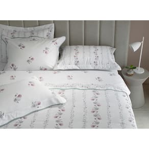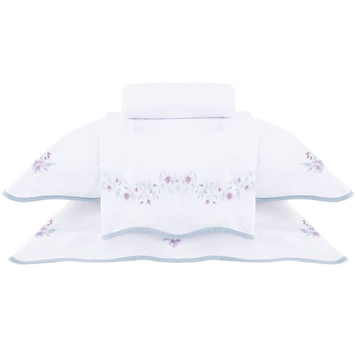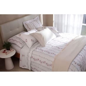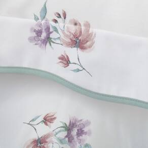 Jogo de cama queen Donna. Com moderna e deliciosa composição em finos fios sedosos, a Coleção Donna possui a leveza e o frescor do campo. A vira do sobrelençol e as fronhas trazem refinado padrão floral aquarelado em tons de rosa, lilás e verde, complementados por elegante acabamento contrastante em viés scalloped. Em Gran Percalle 200 fios de puro algodão com fibras longas, possui trama diferenciada, com toque delicado, alta durabilidade e fácil manutenção. Sua maciez é extraordinária, promovendo o conforto em seu ápice para os melhores momentos de descanso. A Buddemeyer é referência em qualidade e estilo.