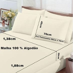 Conteúdo e Medidas: Jogo de Cama Simples - Casal - 03 Peças 01 - Lençol Malha com Elástico Liso(1,38m x 1,88cm x 0,30cm) 02 - Fronha Malha Lisa(0,45cm x 0,70cm) Veste travesseiro (50cm x 70cm)