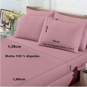 Jogo De Cama Buettner Casal Malha 100% Algodão Basic Liso 3 Peças Rose Blush Jogo de Lençol Basic Liso em Malha Penteada (Fio 30/1) 100% Algodão e gramatura de 120g/m. Esta tecnologia de malha penteada proporciona a não geração de bolinhas, deixando o Lençol e a Fronha muito mais confortável e macio. O Lençol possui elástico em toda sua volta, se adaptando mais facilmente ao colchão e sendo mais prático no momento de colocá-lo no colchão, mantendo-o sempre muito bem esticado na cama. Jogo de Cama Buettner Casal Malha 100% Algodão Basic Liso 3 Peças Rose Blush