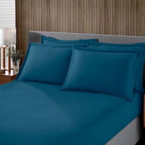 Jogo De Cama Buettner Solteiro King Malha Liso 2 Peças Image Azul