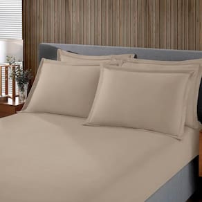 Jogo de Cama Buettner Solteiro King Malha Liso 2 Peças Image Bege