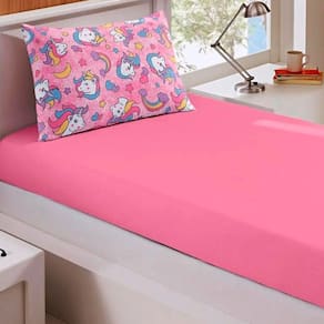 Jogo de Cama Buettner Solteiro Malha Basic Unicórnios 2 Pçs Rosa