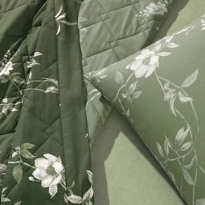 Marcella traz frescor e transforma o ambiente com delicadeza e aconchego. A estampa da fronha e do sobrelençol apresenta florais delicados que se destacam sobre a base em tom de verde. O lençol com elástico acompanha a paleta de cores, com uma padronagem de textura sutil, que harmoniza de forma leve. Com uma estampa de verde imponente que enriquece a decoração, o jogo de cama Marcella é perfeito para compor o quarto com conforto e elegância.