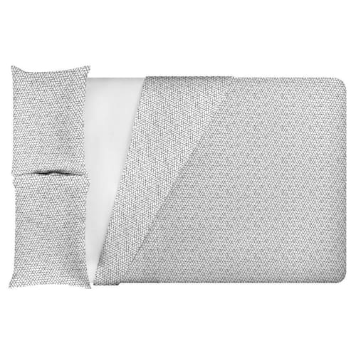Roupa de cama CASAL, 100% algodão, formada por 4 peças: 01 lençol de 2,00 m x 2,50 m; 01 lençol com elástico para colchão, de até 1,40 m x 1,90 m x 30 cm; 02 fronhas, medindo 50 cm x 70 cm.