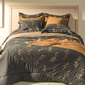 De toque supremo com experiência sensorial do cetim 300 fios, produzido com 100% algodão egípcio de fibras longas. Esse tecido sedoso, de toque extremamente macio e com cintilância natural, por conta do entrelaçamento dos fios; além disso, sua estrutura maleável proporciona um caimento perfeito na cama. O algodão egípcio tem propriedades hipoalergênicas e altamente respiráveis, que regulam a temperatura corporal e proporcionam uma noite de sono perfeita. Suas fibras longas impedem a formação de bolinhas e garantem fios mais finos, criando um tecido muito mais suave e confortável. Ávila é uma cama cheia de personalidade que combina conforto e autenticidade. Sua estampa se destaca pela predominância do tom de cinza profundo, enquanto flores e folhas em tons quentes enriquecem a composição. Suas fronhas com 3 abas de 7cm recebe um detalhe em ponto royal, que traz um charme e emoldura o travesseiro. O lençol com elástico traz um ar contemporâneo, com uma padronagem geométrica de triângulos tom sobre tom. Uma cama que se destaca no quarto e abraça em conforto. Foto meramente ilustrativa.
