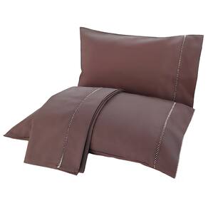 Mais beleza para o seu dia a dia e conforto para as suas noites de sono. Kit de Roupa de Cama Rubi Casal 100% Algodão Contém na embalagem: 1 lençol liso sem elástico com ponto palito 2,40m x 2,20m 2 fronhas lisas com ponto palito 70cm x 50cm Tecido e composição: Percal 180 fios 100% algodão - IMPORTANTE: O lençol com elástico não faz parte desse kit - Aproveite para fazer combinações com colchas, cobre leitos e edredons - O lençol de cima também pode ser utilizado para se cobrir em noites quentes ou frescas - Foto ilustrativa, a tonalidade da cor pode variar um pouco no produto real Marca: Não Informado