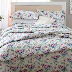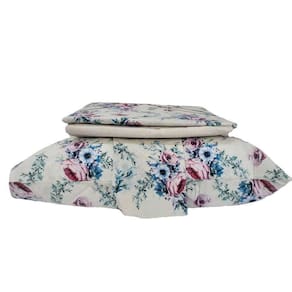 Jogo de Cama Casal Duplo 4 Peças 140 Fios Florido Bege e Azul - Sultan