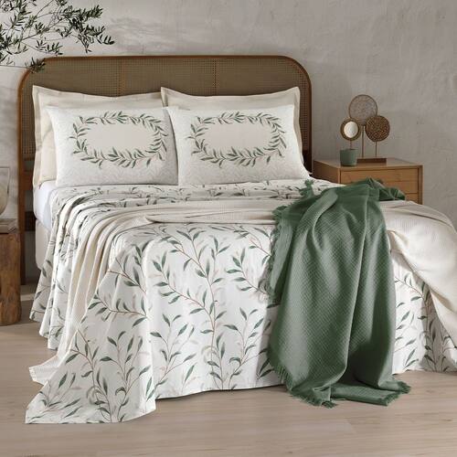 Jogo de Cama Casal 4 peças Lençol com Elástico 100% Algodão Percal 180 Fios 138x188x35cm Dohler - Emcompre - Verde