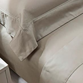 Confeccionado em tecido 100% algodão, 400 fios. De cores neutras e um design único e alta qualidade, Delicatto reúne características indíspensáveis para quem não abre mão da sofisticação e bom gosto. Suas tramas de 400 fios proporcionam ao produto toque super macio e agradável, alta durabilidade e conforto na dose certa. Decore seu quarto e leve para o ambiente muito mais elegância e conforto para as suas noites de sono. Kit composto por lençol de cima com acabamento bordado em ponto ajour, lençol ajustável com elástico para colchões de 30cm de altura e fronhas com abas e acabamento bordado em ponto ajour. Perfeito para vestir sua cama! Foto meramente ilustrativa.