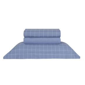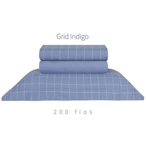 Jogo de Cama Grid Azul Indigo Casal Percal 200 fios 100% Algodão
