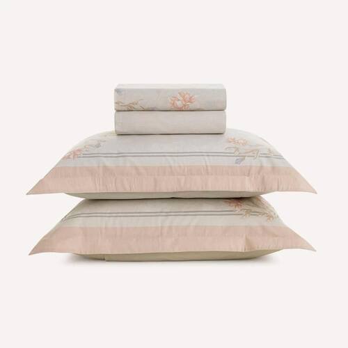 Com flores desenhadas à mão e cores criativas, o jogo de cama Amber combina tons avermelhados e azul em um fundo neutro. A estampa dimensionada nas fronhas traz a silhueta das flores para o centro, reforçando a proposta artística e contemporânea. O lençol com elástico tem estampa de listras suaves, coordenando perfeitamente com o restante do jogo. Feito em 200 fios, oferece máximo conforto do puro algodão e visual leve. Ideal para quem busca uma cama com design autoral e equilíbrio de cores.