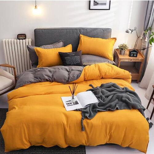 1 lençol com elástico para cama de até 40cm de altura, largura 1,86cm x altura 1,98cm - cinza 1 edredom dupla face com enchimento de 280x280cm - 1 lado do edredom em amarelo e o segundo lado em cinza. 2 capas de travesseiros de 70cm x 50cm - Cor Amarelo - Capa de travesseiro sem enchimento. 2 capas de travesseiros de 70cm x 50cm - Cor Cinza - Capa de travesseiro sem enchimento. 1 almofada de 45cm x 45cm - preto com estampa em branco - Almofada com refil enchimento - Estampa Salmo 91 - Oração