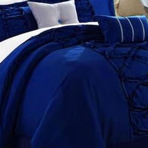 Jogo de cama completo 11 peças Suede Chamois cor Azul Bic e percal de algodão 300 fios Disponível para camas: Casal King Rico, decorativo e de bom gosto. Cor nobre, marcante e super aconchegante. Esse jogo de cama da grife foi desenvolvido para um público que não abre mão de exclusividade, Modernidade e um toque despojado também ao se deitar. Além de lindo, por serem confeccionados em estilo futon europeu, nossos edredons dispensa a necessidade de costurinhas tradicionais, em acabamento totalmente embutido, os jogos da marca deixam qualquer quarto rico, sem a obrigação de alisar e ajeitar o edredom todos os dias ao se levantar. Dobrado, esticado ou apenas jogado sobre a cama, esse jogo garante um ar irreverente e moderno para o seu decor. O Suede Chamois, é um tecido de alta resistência à fricção, com acabamento tipo flanelagem com navalhagem, imitando a pele de camurça. Agradável no toque, nosso Suede tem a dupla vantagem de ficar fresco no verão e aconchegante no inverno. O que vem no Kit: 1 lençol com elástico para colchões casal king de até 40cm de altura - Branco em tecido percal 300 fios. 1 lençol cobre leito de 240x240 - Branco em tecido percal 300 fios. 1 edredom dupla face com enchimento 280x280cm - Frente do edredom em tecido Suede chamois cor Azul Bic e detalhe trançado, costas em tecido Suede Chamois cor Azul Bic . 4 capas de travesseiros de 70cm x 50cm - Tecido Suede Chamois cor Azul Bic e detalhe trançado a fio - Capa de travesseiro sem enchimento. 2 fronhas para travesseiros de 70cm x 50cm - Branco em tecido percal 300 fios - Capa de travesseiro sem enchimento. 1 almofada exclusiva da marca de 50cmx50cm - Almofada em tecido Suede Chamois cor cinza claro e detalhe delicado com botão cor Azul Bic - Almofada com enchimento. 1 almofada baguete exclusiva da marca de 55x35cm - Baguete em tecido Suede Chamois cor Azul Bic e detalhes em tiras de cinza claro - Acompanha refil de enchimento.. Composto por: Lençol, cobre leito e fronhas - em tecido Percal 300 fios - Algodão Edredom, capas de travesseiros e almofadas em Tecido Suede Chamois - Poliéster - Tecido desenvolvido para grife de toque macio e confortável, anti-pilling e super resistente a lavagem garantindo durabilidade ao seu jogo de cama. Almofadas já com enchimento em fibra de algodão e tnt antialérgico As capas de travesseiros não acompanham refil de enchimento. Mais detalhes: Capa de almofada com zíper invisível para um acabamento delicado e de fácil lavagem Atenção: o produto pode sofrer pequena alteração de tonalidade de cor dependendo da configuração do seu computador, tablet ou celular. Imagens meramente ilustrativas. Marca: Casa Da Fama