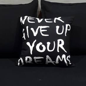 1 almofada exclusiva e a mais desejada da marca. 45cm x 45cm - preto com estampa em branco - Frase: Never give up your dreams Nunca desista dos seus sonhos