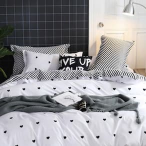 O Jogo de Cama Love Designer conta com sete peças, incluindo edredom, lençol, capas de travesseiro e almofada. Com cores lindas e relaxantes, este jogo é feito com materiais de toque macio e confortável. O jogo possui a cor branca com corações pretos, enquanto a almofada é preta com a estampa "never give up your dreams". Lençol, edredom e capas de travesseiros são produzidos em microfibra, poliéster e elastano. A almofada já contém enchimento em manta siliconada tecnológica antialérgica 100% poliéster. As Capas de travesseiro não acompanham enchimento. Suas estampas são 100% digital e de alta qualidade. Assim, as peças não desbotam com a lavagem e com o passar do tempo. Características: - Kit com sete peças - Tecidos de toque macio e confortável - Estampa 100% digital, não perde a qualidade com a lavagem - Edredom dupla face: corações e listras - Almofada estampada "Never give up your dreams" - Capa de almofada com zíper invisível - Alta qualidade da grife Casa da Fama: dos cenários de novelas para sua casa - Lençol listrado ideal para colchões de até 35cm de altura Especificações técnicas Marca: Casa Da Fama Modelo: Love Designer Cor: Preto e branco Estampa: Never give up your dreams Quantidade peças: 07 Tamanho: Casal Composição: Microfibra, poliéster e elastano Enchimento: Manta siliconada tecnológica antialérgica 100% poliéster Tamanho Edredom: 2,40 x 2,40 cm Tamanho Capa Travesseiro: 70 x 50 cm Tamanho Almofada: 45 x 45 cm Itens Inclusos 01 edredom dupla face de 2,40 x 2,40 cm 02 capas de travesseiros de 70 x 50 cm Listras 02 capas de travesseiros de 70 x 50 cm Corações 01 almofada 45 x 45 cm preta com estampa branca Atenção: o produto pode sofrer pequena alteração de tonalidade de cor dependendo da configuração do seu computador, tablet ou celular. Sobre a marca: A Casa da Fama Designer nasceu do projeto de desenvolver almofadas criativas e modernas para compor cenários de programas de televisão e novelas. Com esse trabalho a marca ganhou reconhecimento e consideração no mercado. Assim, nasceu em 2015 uma das maiores grifes de decoração do Brasil. Marca: Casa Da Fama