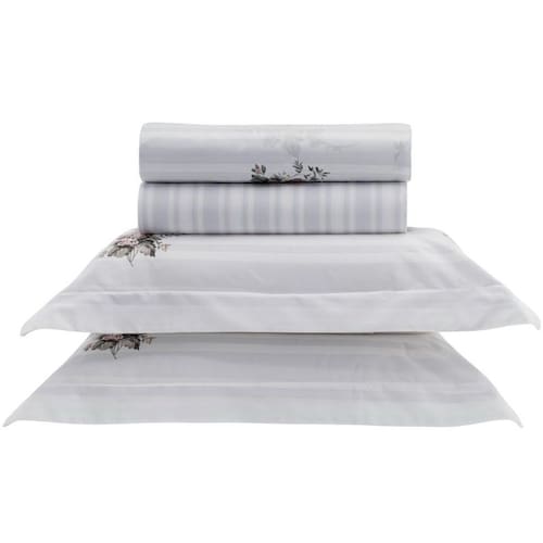 Jogo de Cama Casal Vida Bela 200 Fios Verene Kacyumara Jogo de Cama Casal Vida Bela Os jogos de cama da linha Vida Bela da Kacyumara são produzidos em 100% algodão, percal 200 fios e possui um toque macio e aconchegante.Possui também a tecnologia antipilling, que evita que o tecido forme bolinhas.Perfeito para a decoração da sua cama. O jogo de cama contém:1 lençol com vira 2,20m x 2,40m1 lençol com elástico 1,40m x 1,90m x 30cm2 fronhas 50 x 70 cm Material: 100% algodão, Percal 200 FiosEstampa: VereneMarca: Kacyumara Obs: imagem ilustrativa. O edredom e cobreleito não acompanham o jogo de cama. Marca: Não Informado