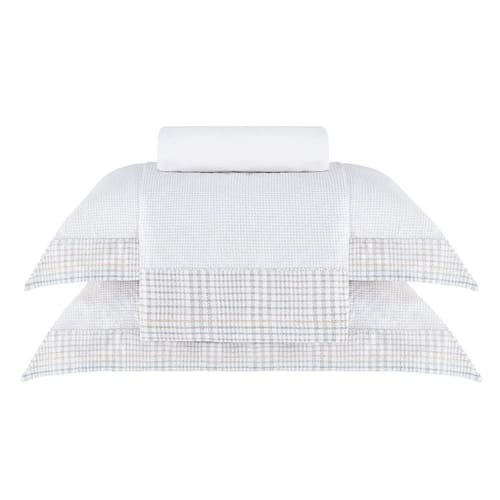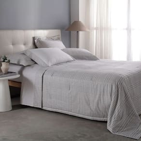 O sofisticado mix de elementos da alta-costura torna a Coleção Castillo Gran Percalle elegante e atemporal. Associado à nobreza britânica, o clássico xadrez Príncipe de Gales, em tons neutros, surge em uma combinação moderna com o padrão pied poule, entregando design diferenciado e muito refinado para o sobre lençol e fronhas. E o acabamento em ponto ajour arremata as peças conferindo o tradicional visual da alfaiataria. Em 200 fios de puro algodão com fibras longas, o modelo possui toque ultra macio, promovendo máximo conforto, alta durabilidade e facilidade de manutenção. A Buddemeyer é referência em qualidade e estilo.