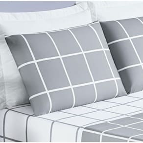 O jogo de cama Austin é super moderno e prático. Confeccionado em tecido micropercal 200 fios em estampa grid, traz suavidade e conforto ao seu ambiente.