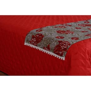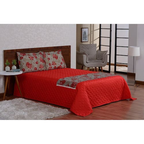 Jogo de cama com lençol fronhas e xale 5 peças vermelho casal Cobre leito valencia casal 5 peças Contém: 01 cobre leito 2,20m x 2,00m. 02 portas travesseiro 0,70cm x 0,50cm. 01 xale 1,50 x 0,50 01 lençol branco com elástico para cama 1,88mx 1,38m x 0,25cm