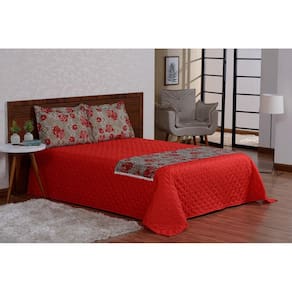 Jogo de cama com lençol fronhas e xale 5 peças vermelho queen Cobre leito valencia casal queen 5 peças Contém: 01 cobre leito 2,50m x 2,20m. 02 portas travesseiro 0,70cm x 0,50cm. 01 xale 1,70 x 0,50 01 lençol branco com elástico para cama 1,98m x 1,58m x 0,25cm