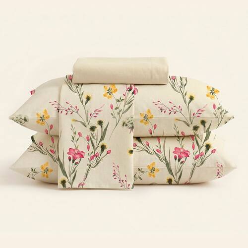 Jogo de Cama de Casal 130 Fios Duplo 4 peças Floral Lirian Camesa - Bege Claro