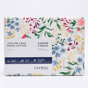 O Jogo de Cama para Casal da coleção Micro Cotton, é produzido em poliéster 150 fios com toque macio estilo algodão. Possui duas fronhas, um lençol com elástico para colchões de até 30cm de altura, e um lençol para a parte de cima do colchão. O jogo de casal é desenvolvido especialmente para aqueles que buscam proteger sua cama, com uma bela decoração e sensação de conforto. Com a estampa floral, este conjunto irá completar sua decoração e deixar seu quarto ainda mais bonito. A Linha de Cama Micro Cotton Camesa traz peças extremamente macias, fáceis de lavar e que possuem toque aconchegante e suave, garantindo uma noite mais confortável e um sono mais prazeroso.